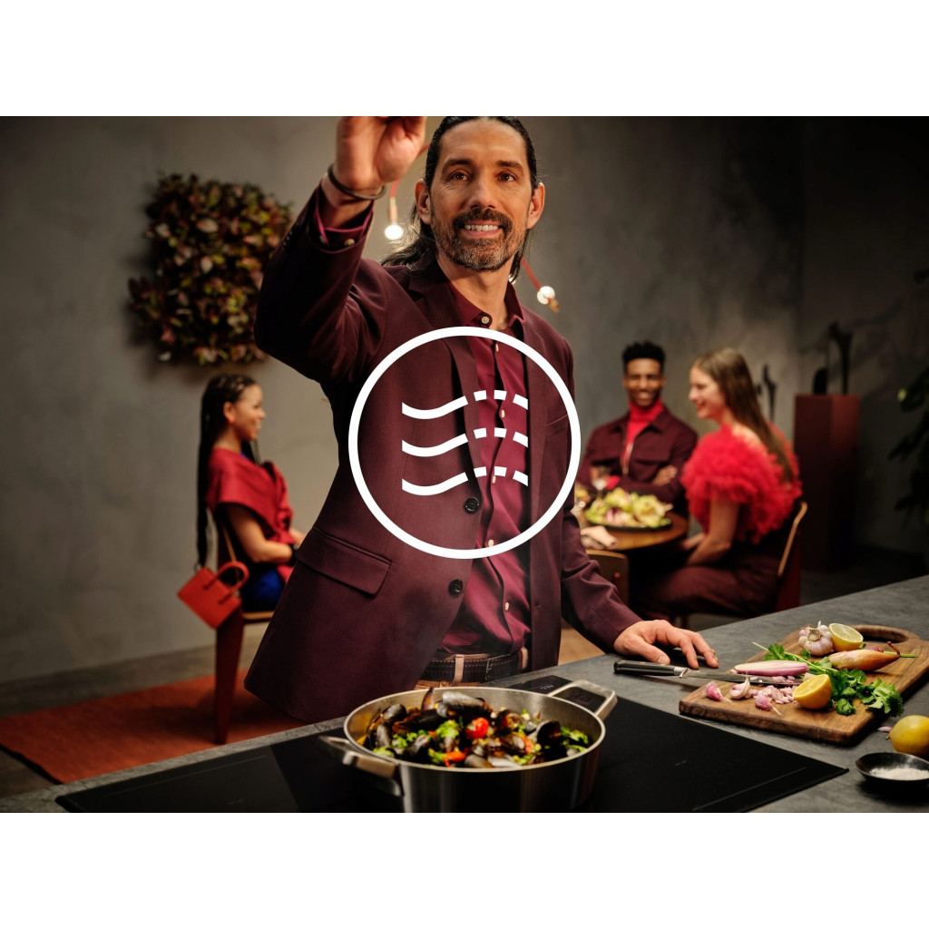 A Hob2Hood® funkció vezeték nélkül aktiválja a páraelszívó világítását, amikor bekapcsolja a főzőlapot. A főzés megkezdésekor a ventilátor sebességét a főzőlap hőbeállításai alapján szabályozza. Főzzön finom ételeket anélkül, hogy aggódna a szagok és gőzök miatt.