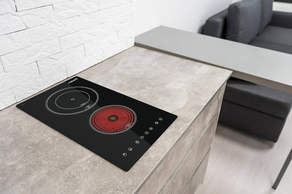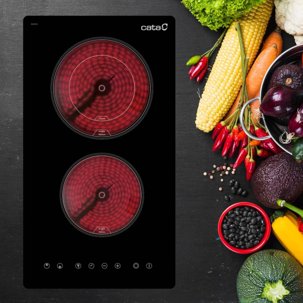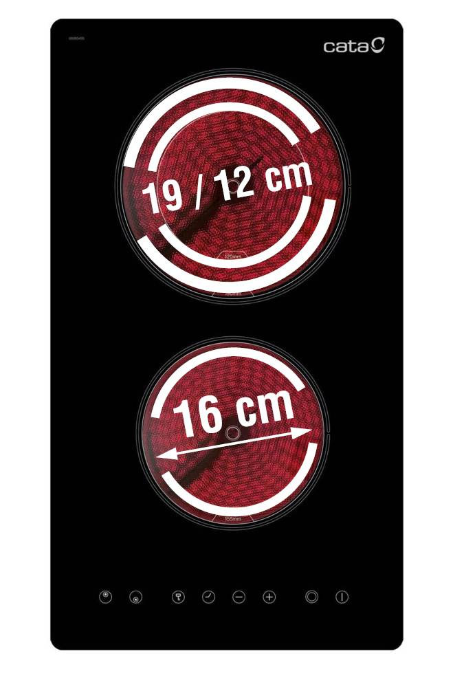2 High Light főzőzóna, Touch Control vezérlés, 1 db 155 mm-es (1200 W), 1 db kétkörös bővíthető zónás 190/120 mm-es (1800/900 W) főzőzóna, 9 fokozat, gyerekzár, maradékhő visszajelzés, teljesítmény: 3,2 kW