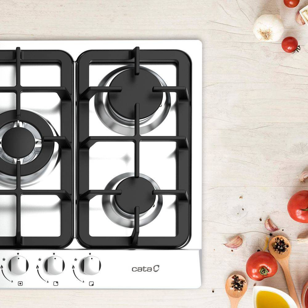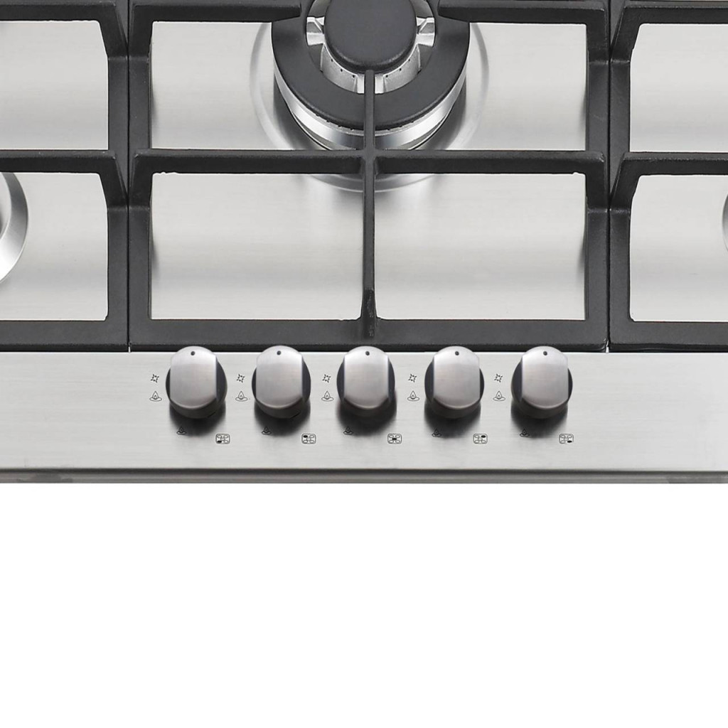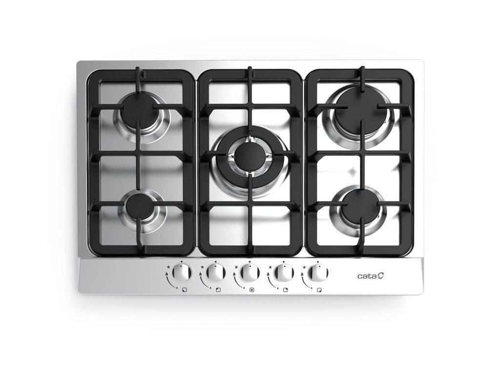 5 gázégő égésbiztosítóval, automata szikragyújtás, inox felület, öntöttvas rács, 60 cm széles szekrénybe építhető, teljesítmény: 11 kW, 2 db közepes gázégő - 2x1,75 kW, 1 db tripla koronás WOK égő - 3,5 kW, 1 db nagy égő - 3 kW, 1 db normál égő - 1 kW