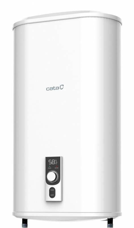 Cata CTRS-50 REV SLIM 50 literes elektromos vízmelegítő, teljesítmény: 1200/2000 W, vízszintes vagy függőleges szerelés, dupla tartály, 850º C-ig hőálló titán zománcozású acéltartály, digitális kijelző, elektronikusan állítható hőmérséklet (1ºC-os pontosággal) teljesítmény szabályzás (mono/duo/automata), magnézium anód, szuper-szigetelés CFC- és HCFC-mentes poliuretánnal, fagyás elleni védelem, hibakijelzés, biztonsági szelep, speciális külső poliészter festés