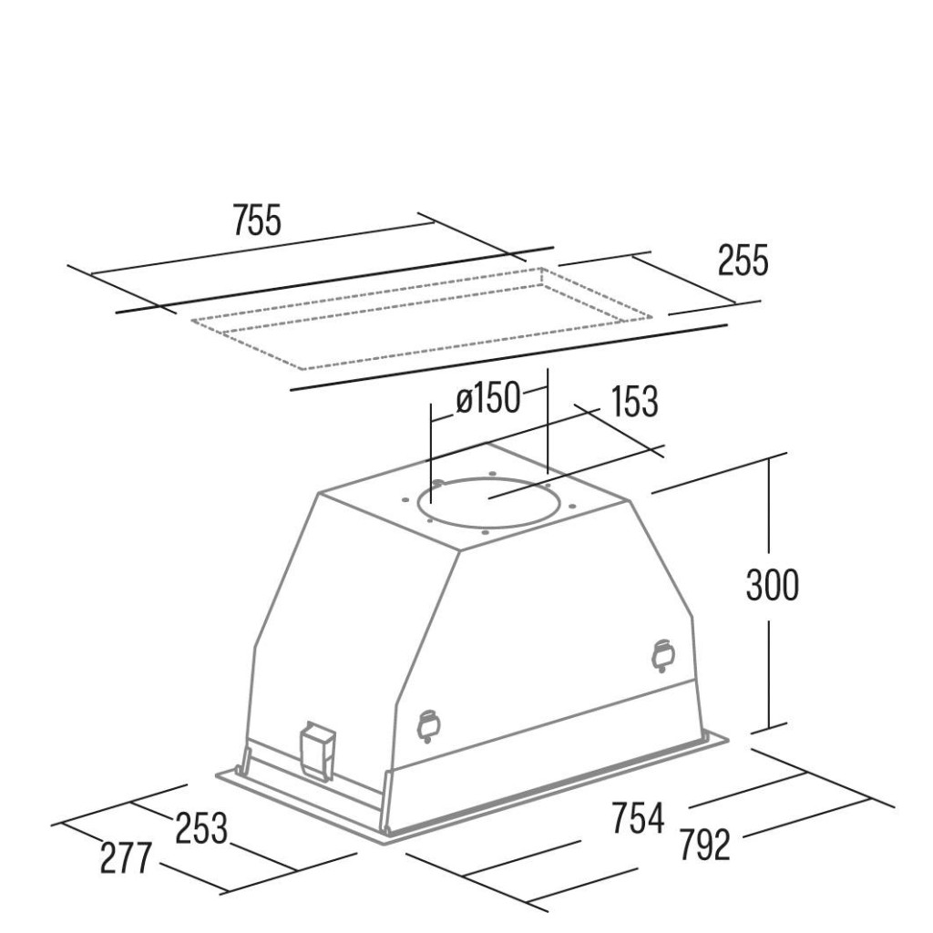 Ez a páraelszívó felső szekrénybe vagy kürtőbe építhető, 4 fokozattal (3+1 turbó) BT3-as motorral rendelkezik, extra magas (405 Pa) nyomásértékkel, érintővezérléssel és utószellőztető funkcióval. A lehajtható üveg terelőpanel mögött található fém zsírfilter mosogatógépben mosható. Ennek szükségességére zsírszűrő telítettség kijelző figyelmezet.