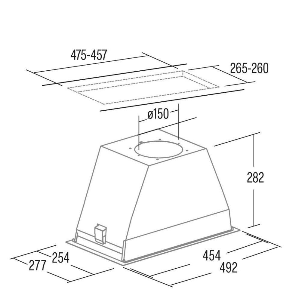 A készülék továbbfejlesztett energiatakarékos és költséghatékony szabályozható ECO LED világítással rendelkezik, melynek élettartama tízszerese a hagyományos izzókénak, ugyanakkor 90 %-kal kevesebb energiát fogyaszt. Ez a páraelszívó felső szekrénybe vagy kürtőbe építhető és 3 fokozattal rendelkezik. A készülék alján lévő fém zsírfilter mosogatógépben mosható.