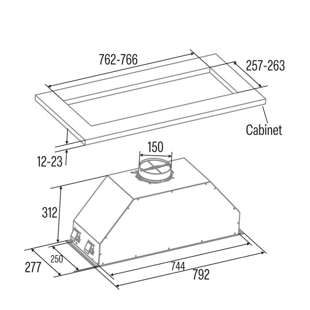 A készülék továbbfejlesztett energiatakarékos és költséghatékony szabályozható ECO LED világítással rendelkezik, melynek élettartama tízszerese a hagyományos izzókénak, ugyanakkor 90 %-kal kevesebb energiát fogyaszt. Ez a páraelszívó felső szekrénybe vagy kürtőbe építhető és 3 fokozattal rendelkezik. A készülék alján lévő fém zsírfilter mosogatógépben mosható.