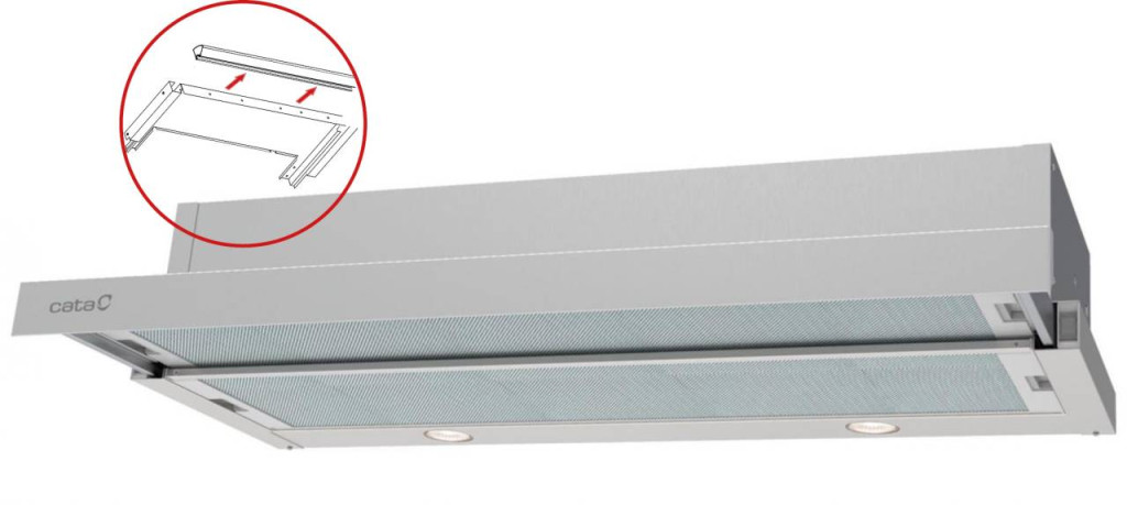 A CATA TF-2003 sorozatot arra tervezték, hogy beszerelhető legyen egy konyhabútor felső szekrénybe. Beépítése gyors és egyszerű, a tetején és az oldalán is található rögzítési pontoknak köszönhetően. A távtartó a páraelszívó és a fal között távolság áthidalására szolgál. A páraelszívó dobozában megtalál minden tartozékot a készülék felszereléséhez. Előlapja levehető, így akár konyhabútor anyagával azonos előlap is felszerelhető. Az elszívott levegő a szabadba egy csővezetéken keresztül távozik, (kivezetéses üzemmód) amit egy 120 vagy 125 mm átmérőjű nyíláshoz kell csatlakoztatni egy csőcsonk segítségével. Tilos égéstermékek céljára használt csatornákba, kéményekbe bevezetni!