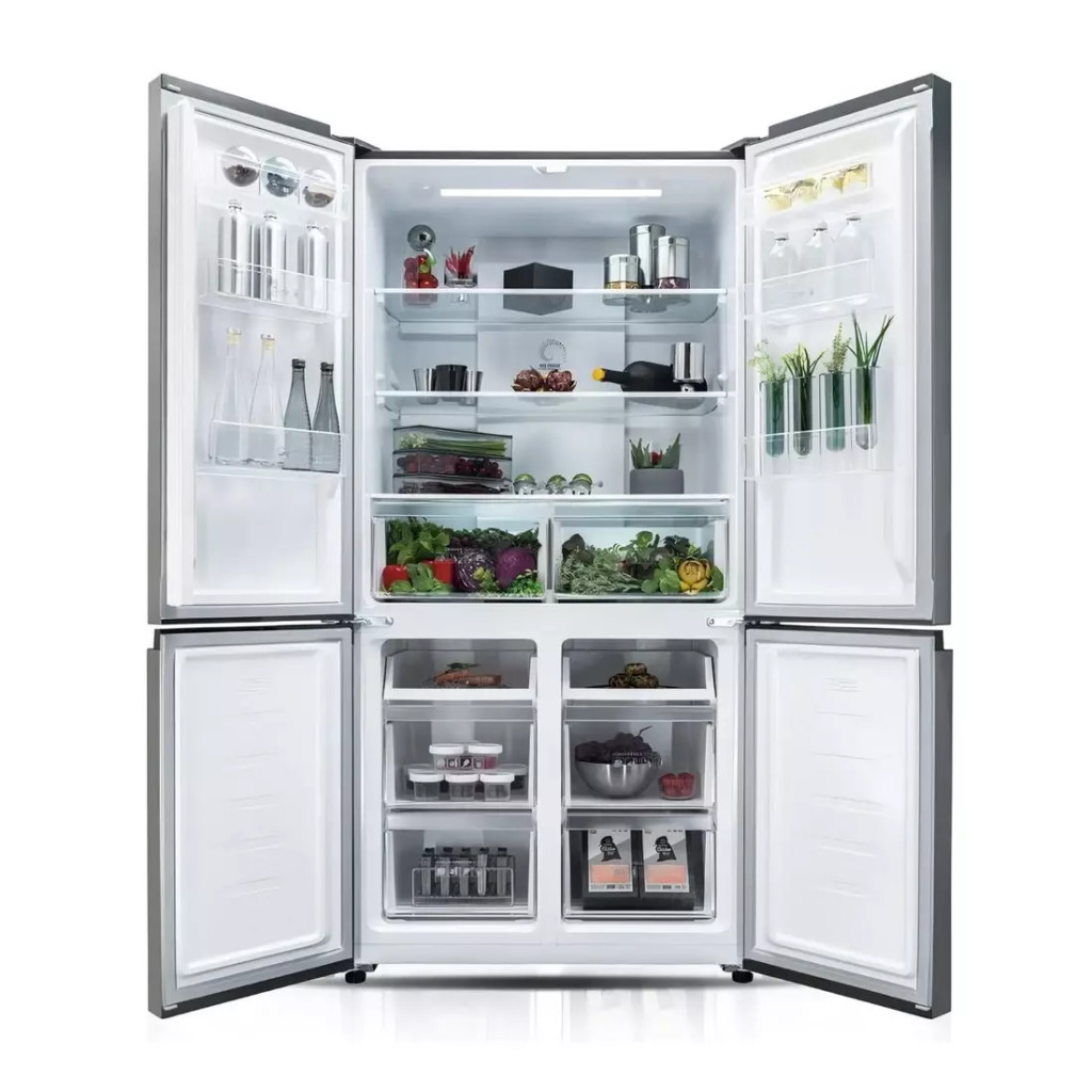 A Davoline D4SS-421D IX hűtőszekrény 600 liter nettó kapacitásával ideális választás mindazok számára, akik bőséges tárolóhelyet keresnek. A hűtőrész 429 literes befogadóképessége biztosítja a friss élelmiszerek kényelmes elhelyezését, míg a 171 literes fagyasztórész gondoskodik arról, hogy mindig elegendő hely álljon rendelkezésére a fagyasztott termékeknek is. A négyajtós kialakítás lehetővé teszi az átláthatóbb rendszerezést és a könnyebb hozzáférést a mindennapi használat során.
