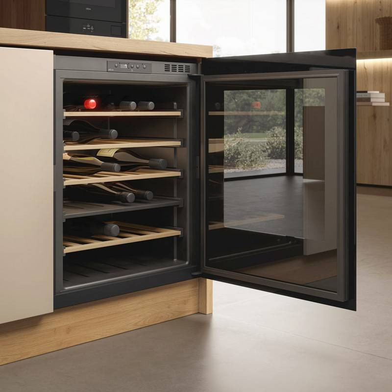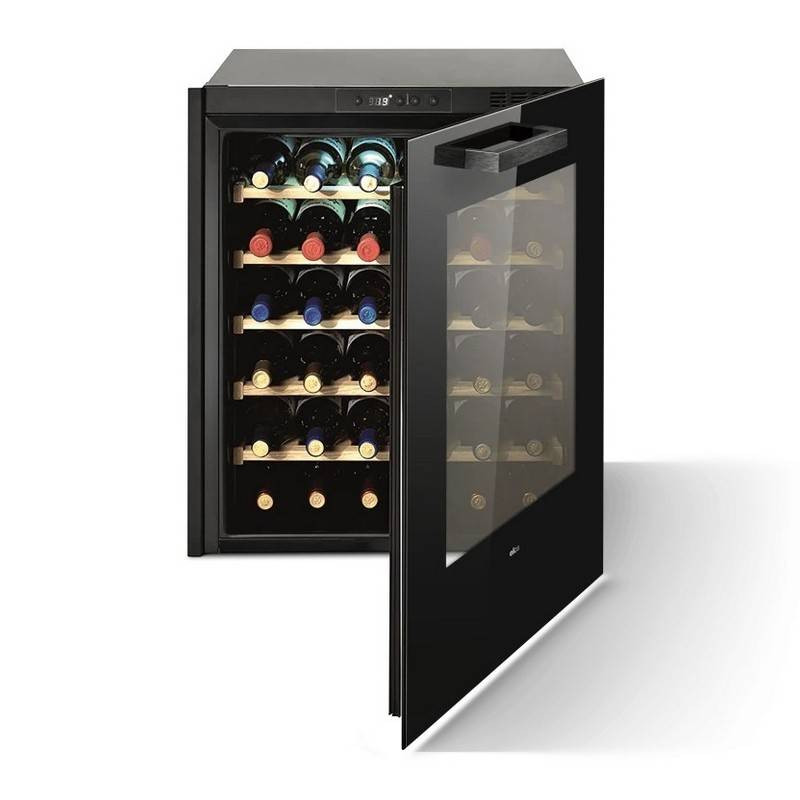 Alig született meg, de máris nagyszerű. Ez egy kis borospince, kiemelkedő méretekkel és kifinomult dizájnnal, amelyet jól kihangsúlyoz az egyszerű vonalvezetés és a fekete üveg. Az ajtó átlátszósága kiemeli tartalmát: a borokat, amelyek ideális körülmények között tárolhatók benne, akár hosszú ideig is. Két külön zóna a vörös- és fehérborok számára, hőmérséklet- és páratartalom-stabilitás-szabályozás, UV-szűrt fény és mikrovibráció-mentesítés jellemzi a készülék funkcionalitását.