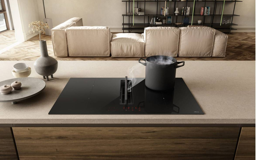 A matt fekete üveg az esztétikai koncepciója ennek az hatékony és sokoldalú, 80 cm-es alaplaphoz is alkalmas páraelszívóval integrált lapnak. Az ujjlenyomatmentes felület ellenáll a karcolásoknak és a kopásnak, ami nagyban leegyszerűsíti az összes tisztítási műveletet. Egy egyszerű érintéssel aktiválható, és a dupla hídzóna kibővíti a főzési lehetőségeket, lehetővé téve még a legnagyobb edények használatát is. Amikor a a páraelszívó zárva van, a konyhalap teljesen lineáris, ami igen esztétikus hatást kelt. Az integrált elszívórendszer egy mozdulatra eltünteti a szagokat, füstöt és gőzöket. A hosszú élettartamú szagszűrők könnyen kivehetők, és egy speciális szelep lehetővé teszi a kiömlött folyadékok leeresztését a teljes higiénia érdekében.
