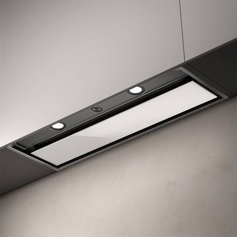 Ez egy nagy teljesítményű motorral, LED-fényekkel és push-pull aktiválásvezérléssel felszerelt páraelszívó. Úgy tervezték, hogy a lehető legtöbbet hozza ki a legkisebb helyiségekből is, középső és két oldalsó üveglapja védi a fali egységet még a legalacsonyabb (50 cm-es) beépítéseknél és a gázfőzőlapoknál is. T-alakjának köszönhetően teljesen a faliszekrények belsejébe süllyeszthető, így optimalizálva a helykihasználást.