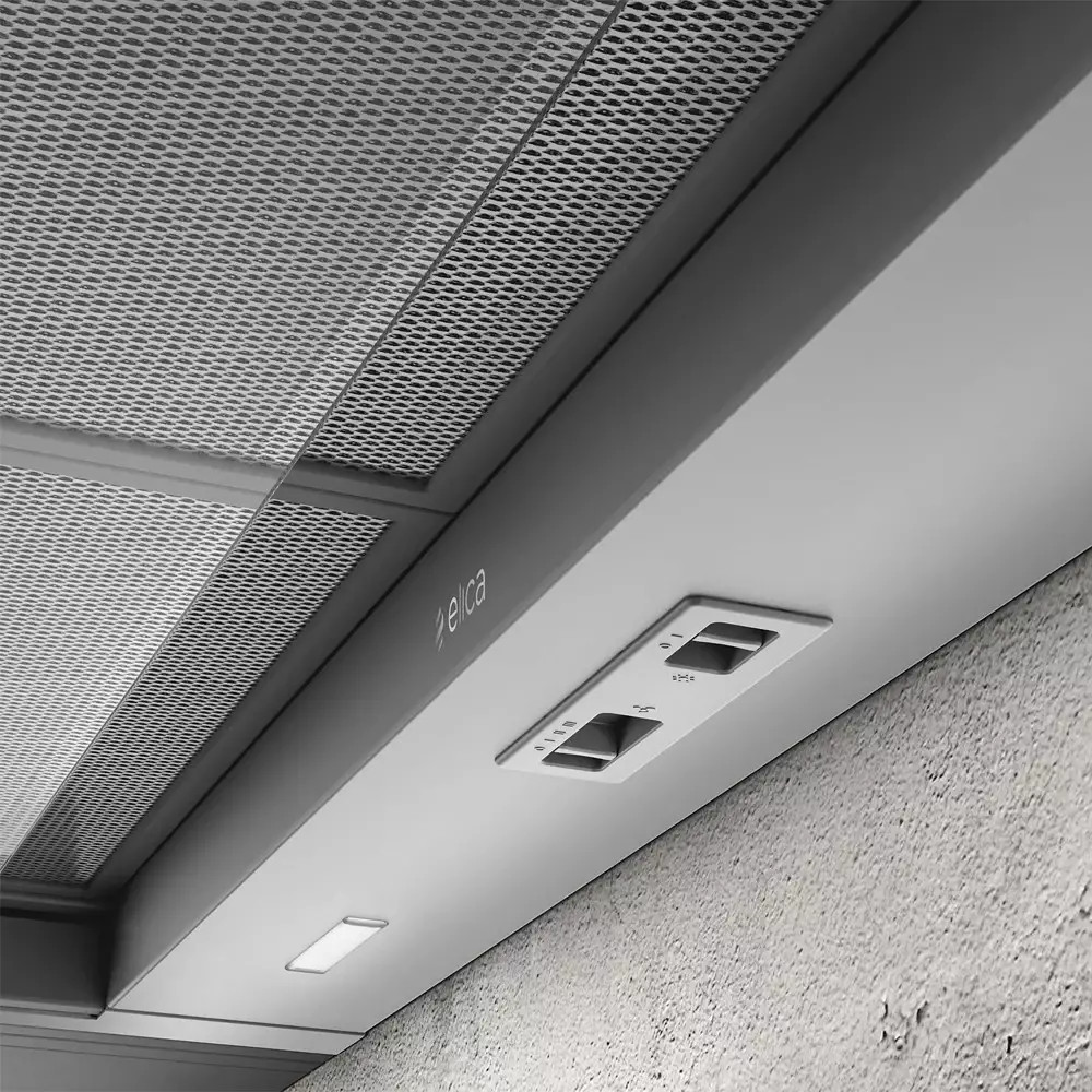 Ez egy minimalista kialakítású, beépített páraelszívó, amelyet úgy terveztek, hogy teljesen elrejthető legyen a fali szekrényben.