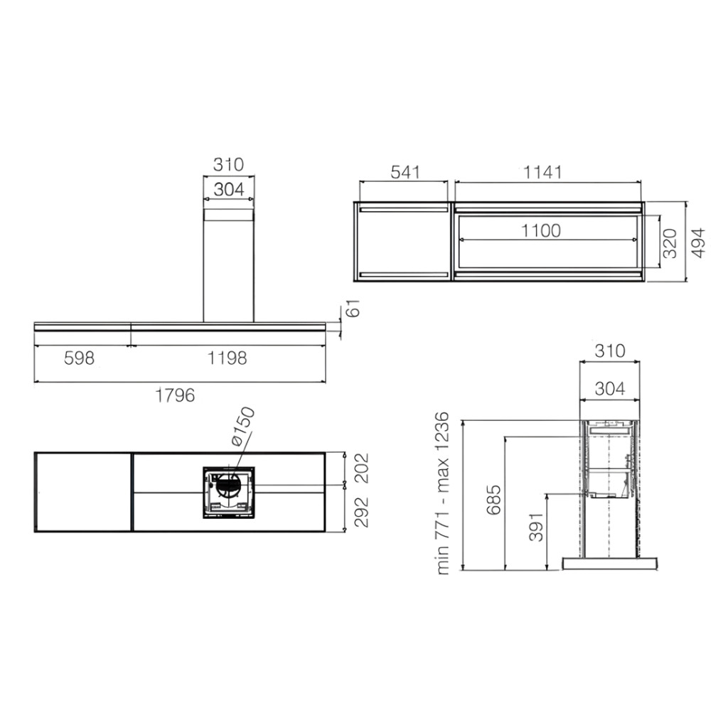 Az Elica ELEMENT ISL @ BLMAT/A/180 sziget páraelszívó a modern konyhák elegáns és hatékony megoldása. A Elica prémium minőségű készüléke letisztult formavilágával és matt fekete színű kivitelével stílusos központi eleme lehet bármely konyhaszigetnek.
