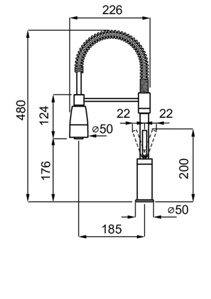 Egykaros félprofesszionális, ívelt, magas, kerámiabetétes csaptelep, oldalsó szabályzóval, forgatható kifolyócsővel, flexibilis zuhanyfejjel, normál beépítéssel, Ø35 mm-es furattal. 3-féle színben rendelhető.