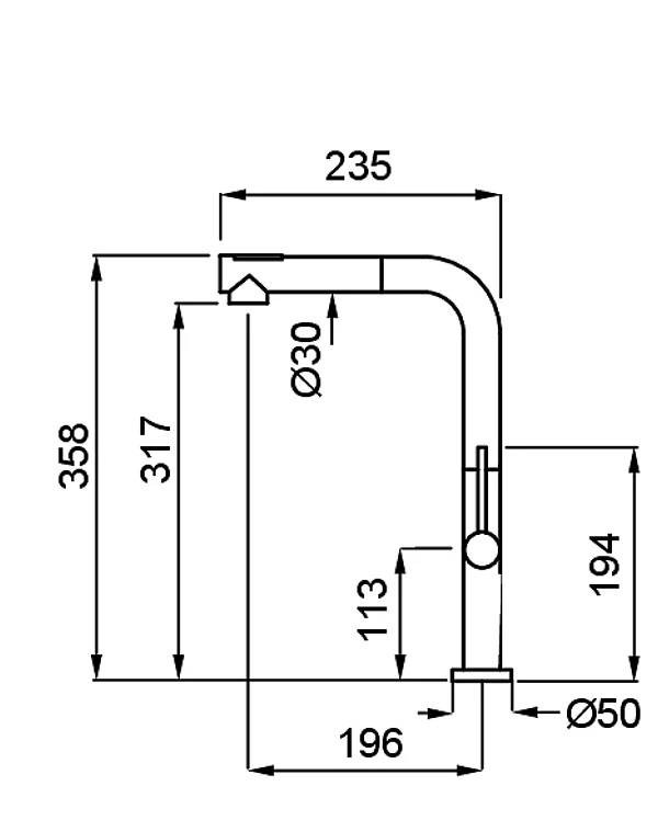 Egykaros modern, kerámiabetétes csaptelep, oldalsó szabályzóval, forgatható kifolyócsővel, kihúzható zuhanyfejjel, normál beépítéssel, Ø35 mm-es furattal. 2-féle színben rendelhető.