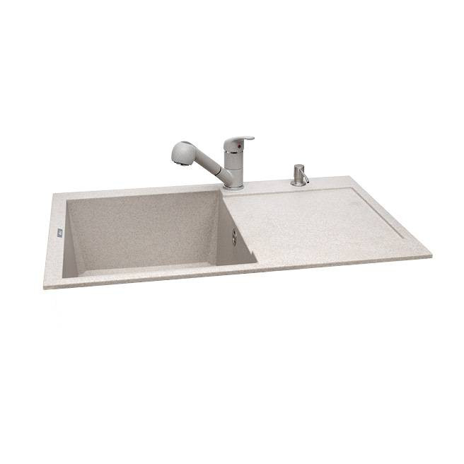 1 medencés mosogatótálca csepegtetővel, munkalapra szerelhető, anyaga: granitek, színe: G51 avena, mosogatótálca mérete: 790x500 mm, medence mélysége: 220 mm, tartozékok: helytakarékos szifon, szűrőkosár, rögzítő fülek, elleci túlfolyó, 10 év garancia