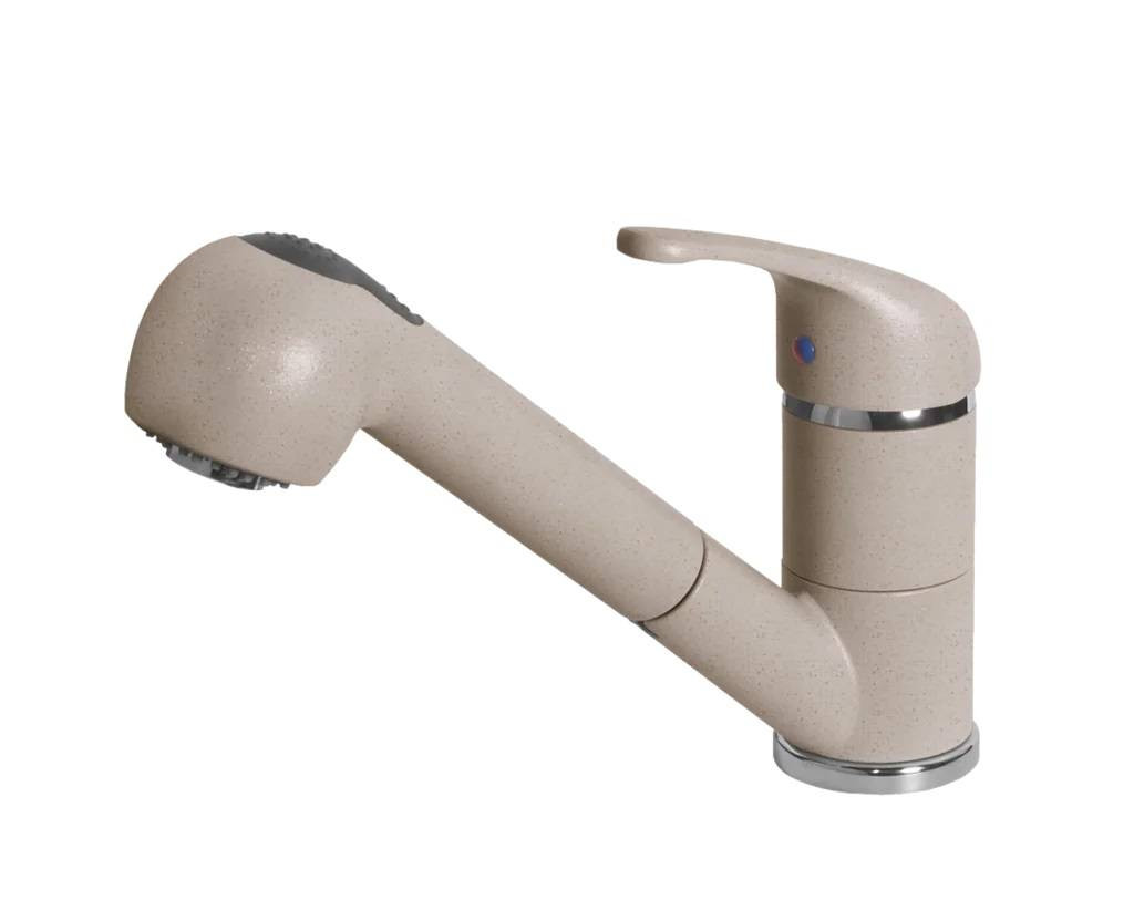 Egykaros csaptelep forgatható kifolyócsővel, kerámiabetéttel, kihúzható zuhanyfejjel és kétféle vízsugárral (zuhany / normál). G51 Avena színben, 5 év garancia