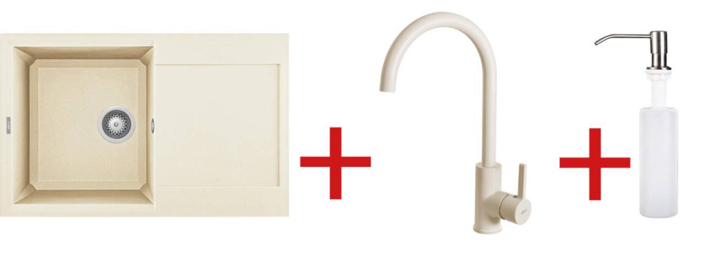 Elleci akciós szett ajánlat: mosogatótálca+csaptelep+mosogatószer-adagoló.