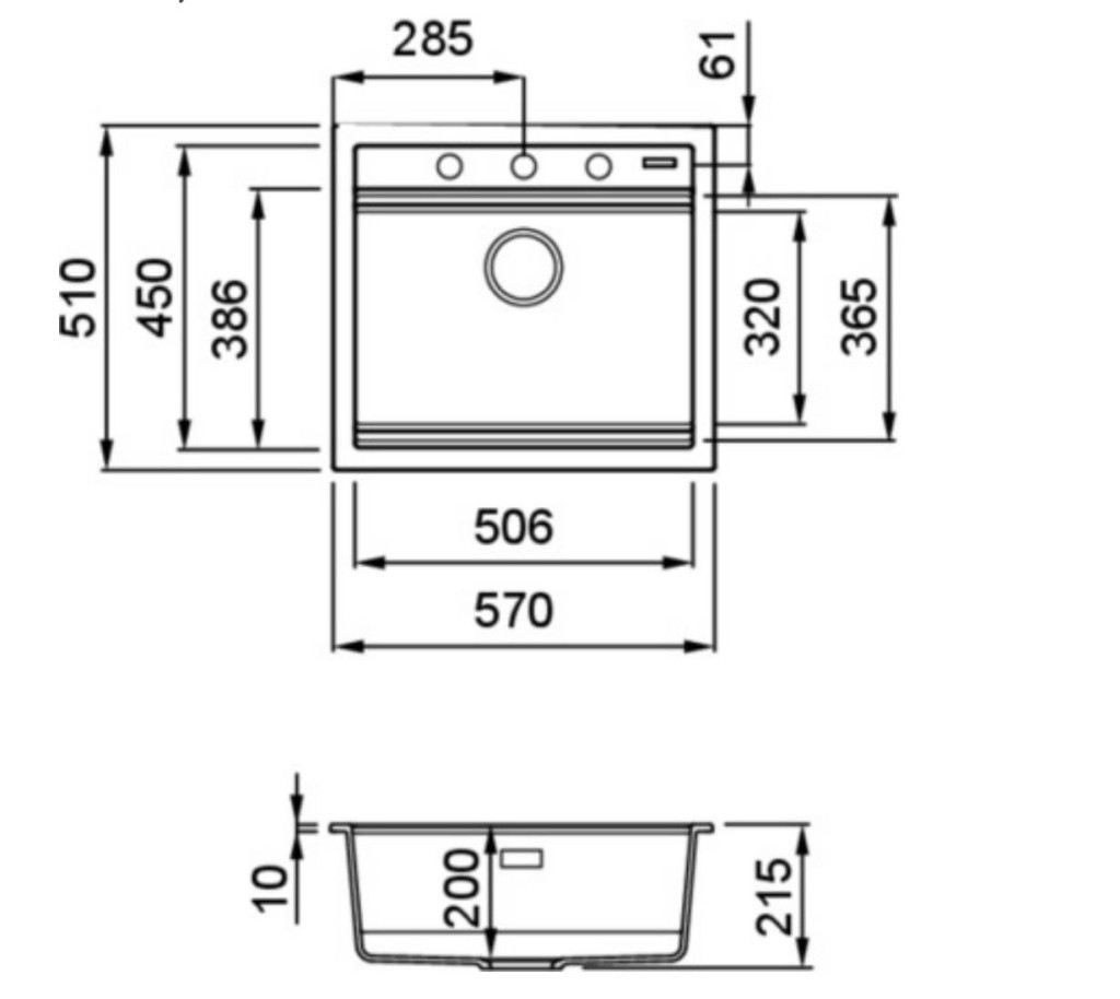 A tálca 570×510 mm-es külső mérete ideális megoldás a kisebb vagy közepes méretű konyhákba. Egyetlen, tágas, 200 mm mély medencéje bőséges teret kínál edények, lábasok mosogatásához, míg a 600 mm széles alsószekrénybe történő beépítés maximális helykihasználást tesz lehetővé.