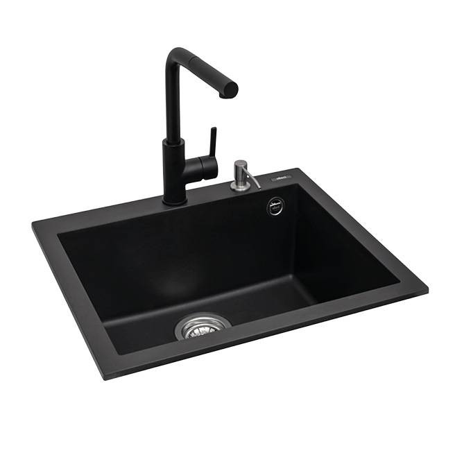 1 medencés mosogatótálca, munkalapra szerelhető, anyaga: granitek, színe: G40 nero, mosogatótálca mérete: 570x500 mm, medence mélysége: 200 mm, tartozékok: helytakarékos szifon, szűrőkosár, rögzítő fülek, elleci túlfolyó, 10 év garancia