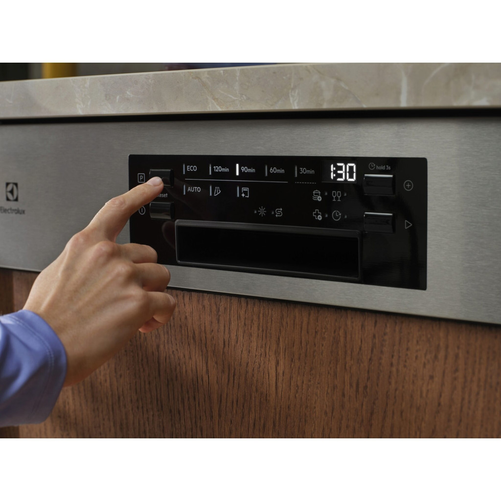 A több irányból permetező szórókar a 600-as sorozatban még alaposabb tisztítást nyújt. A tágas kosarak és lehajtható sorok révén a bepakolás gyerekjáték. Időalapú programválasztás – egyszerűen, gond nélkül.