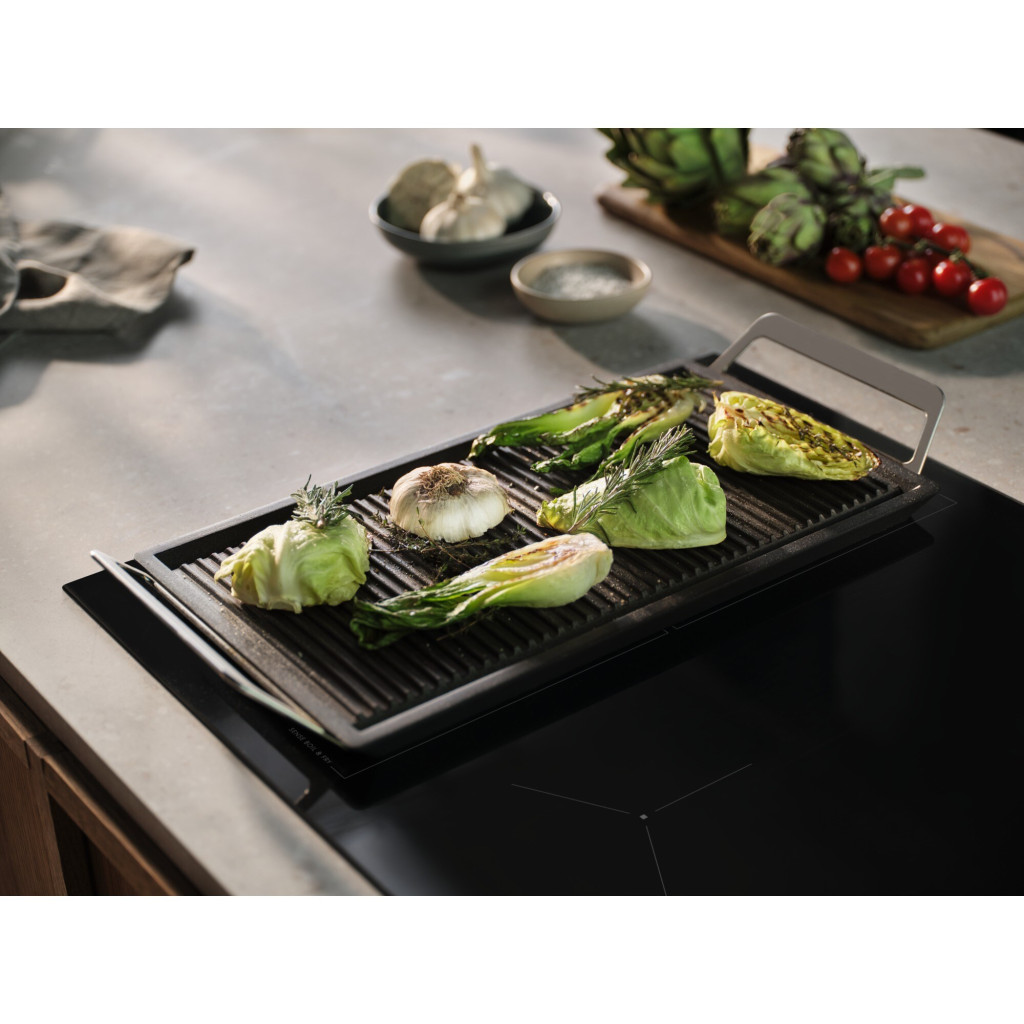 A Bridge funkcióval könnyedén összekapcsolhat két zónát, így nagyobb főzőterületet hozhat létre. A teljes felületen egyenletes hőeloszlást biztosít, így ideális nagyobb méretű edényekhez, serpenyőkhöz és plancha grillhez is.