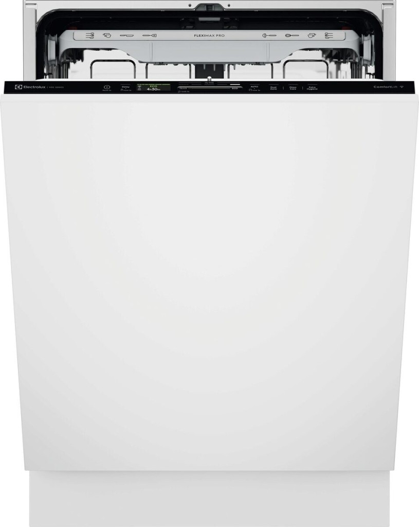 A lehajtható elemek maximális rugalmasságot nyújtanak, a csúszásgátló gumibetét és a tüskék mindkét FlexiMax Pro kosárban megtartják a sima és talpas poharakat, összekoccanás nélkül. A felső evőeszköztálca állítható, így a habverőtől a merőkanálig és a kis csészékig mindennek jut hely.