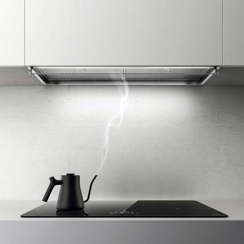 Ez a csatlakoztatható beépített páraelszívó eltűnik a fali egységben. Az elülső védőburkolat, az oldalvédők és az érzékelők maximális védelmet biztosítanak a bútorok számára.