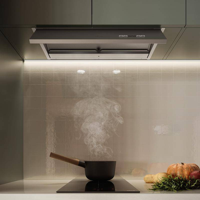 Beépített páraelszívó, amely véglegesen megoldja a kondenzációs cseppek problémáját az indukciós főzőlapokon.