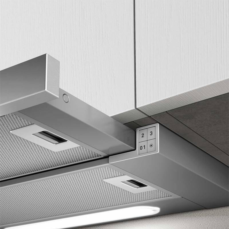 Vezérlése mechanikus (3 fokozatú billenőkapcsoló), illetve külön található világítás kapcsoló, amely az energiatakarékos LED világítást kapcsolja. A motor és a világítás csak akkor működik ha az előlapot kihúzza. A főzés befejezése után javasolt az elszívót kikapcsolni.