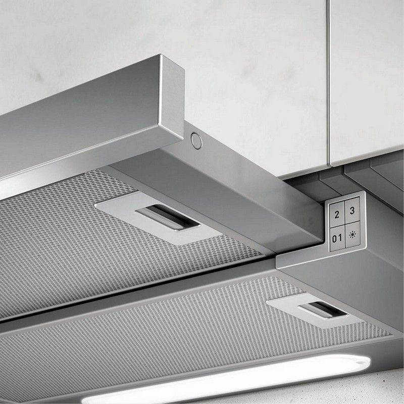 Vezérlése mechanikus (3 fokozatú billenőkapcsoló), illetve külön található világítás kapcsoló, amely az energiatakarékos LED világítást kapcsolja. A motor és a világítás csak akkor működik ha az előlapot kihúzza. A főzés befejezése után javasolt az elszívót kikapcsolni.
