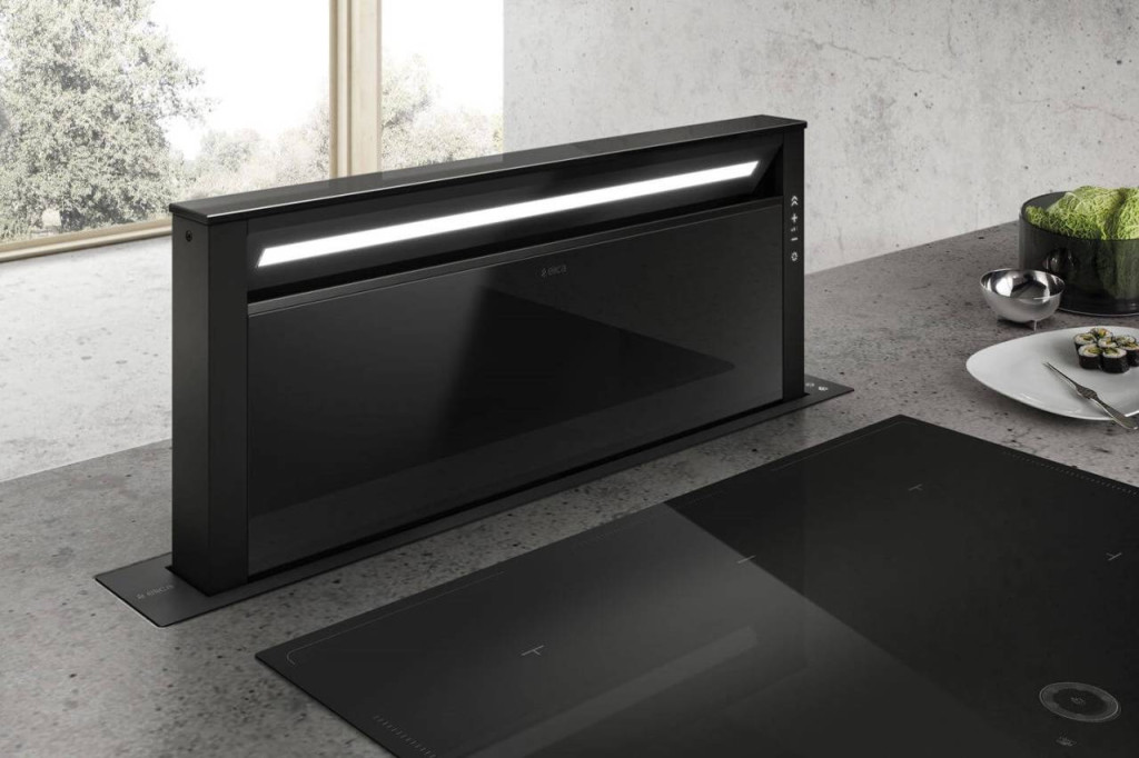 Az Elica GETUP BL MAT/A/90 pultba építhető páraelszívó a konyhai komfort új dimenzióját képviseli. Letisztult fekete felülete, rozsdamentes acél elemei és öntöttvas hatású részletei harmonikusan illeszkednek bármilyen konyhai környezetbe. A készülék diszkréten simul bele a munkapultba, majd a motoros automatika segítségével bekapcsoláskor elegánsan kiemelkedik, hogy közvetlenül a főzés helyén biztosítsa a hatékony elszívást. Kikapcsoláskor pedig visszasüllyed, így a konyha megőrzi rendezett, letisztult megjelenését.
