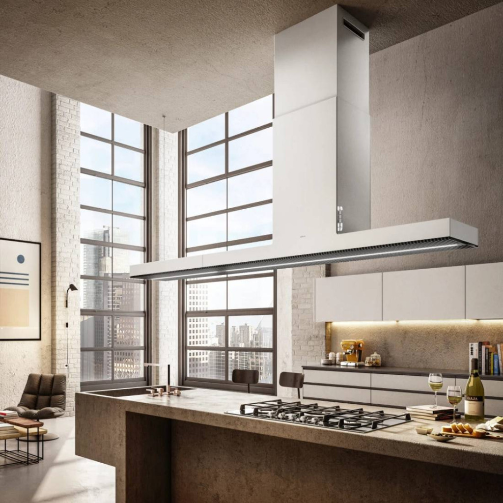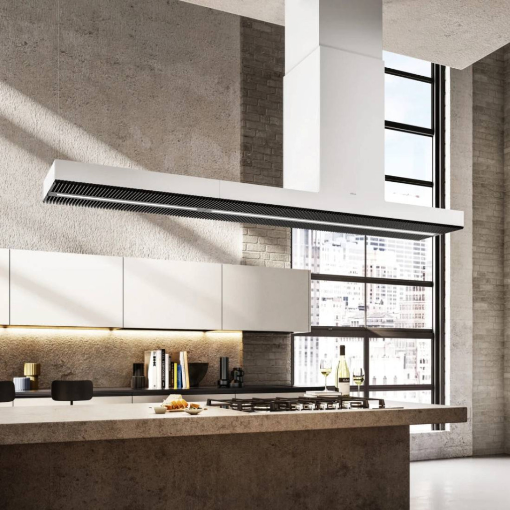 Az Illeszkedés: Tökéletes. Jellegzetes és forradalmi dizájnnal rendelkező projekt, amely ötvözi az esszenciális vonalakat és a legmodernebb anyagokat. A páraelszívó teste és a kürtő tökéletesen, megszakítás nélkül illeszkedik egymáshoz, így egyetlen vonalvezetés határozza meg az egész készüléket. A kiváló elszívóerőt minimális zajjal és figyelemre méltó energiahatékonysággal ötvözi. A karbantartás gyerekjáték, a tisztítás egyszerű és az opcionálisan rendelhető regenerálható szagszűrők akár 3 évig is használhatok.