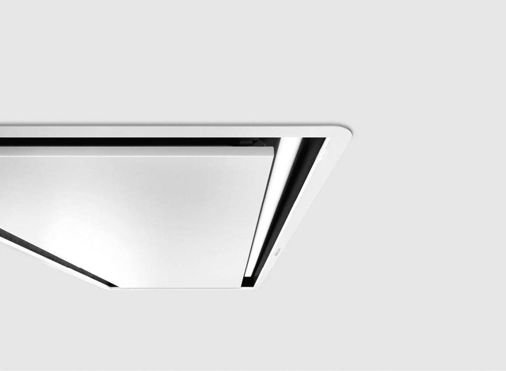 A mennyezettel egy szintben, ez a páraelszívó tökéletesen beleolvad a környezetébe. A projekt elrejti a szívórendszert, amely önmagában aktiválódik, beállítható és leállítható. Vagy az alkalmazás és a hangasszisztens segitségével.