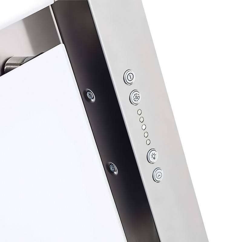 A készülék nyomógombos vezérléssel rendelkezik, amely egyszerű és megbízható működtetést biztosít. A kezelőpanel segítségével könnyedén válthatunk a három elszívási fokozat között, illetve külön kapcsolható a világítás is. Az áttekinthető gombelrendezés gyors és praktikus használatot tesz lehetővé a mindennapokban.