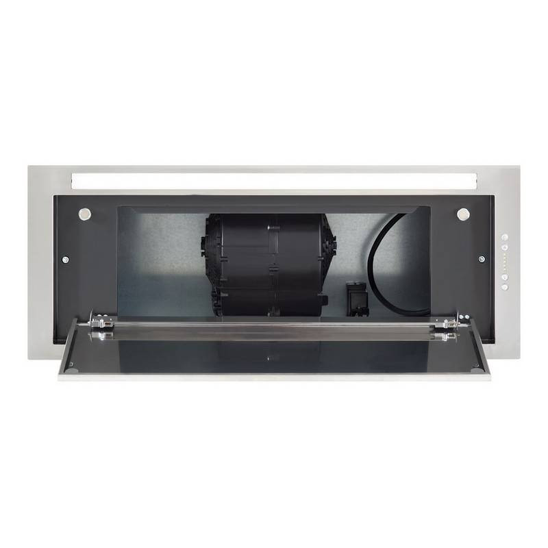 A fali egységbe történő beépítésre tervezett, beépített páraelszívó nagy teljesítményt és alacsony fogyasztást kínál.