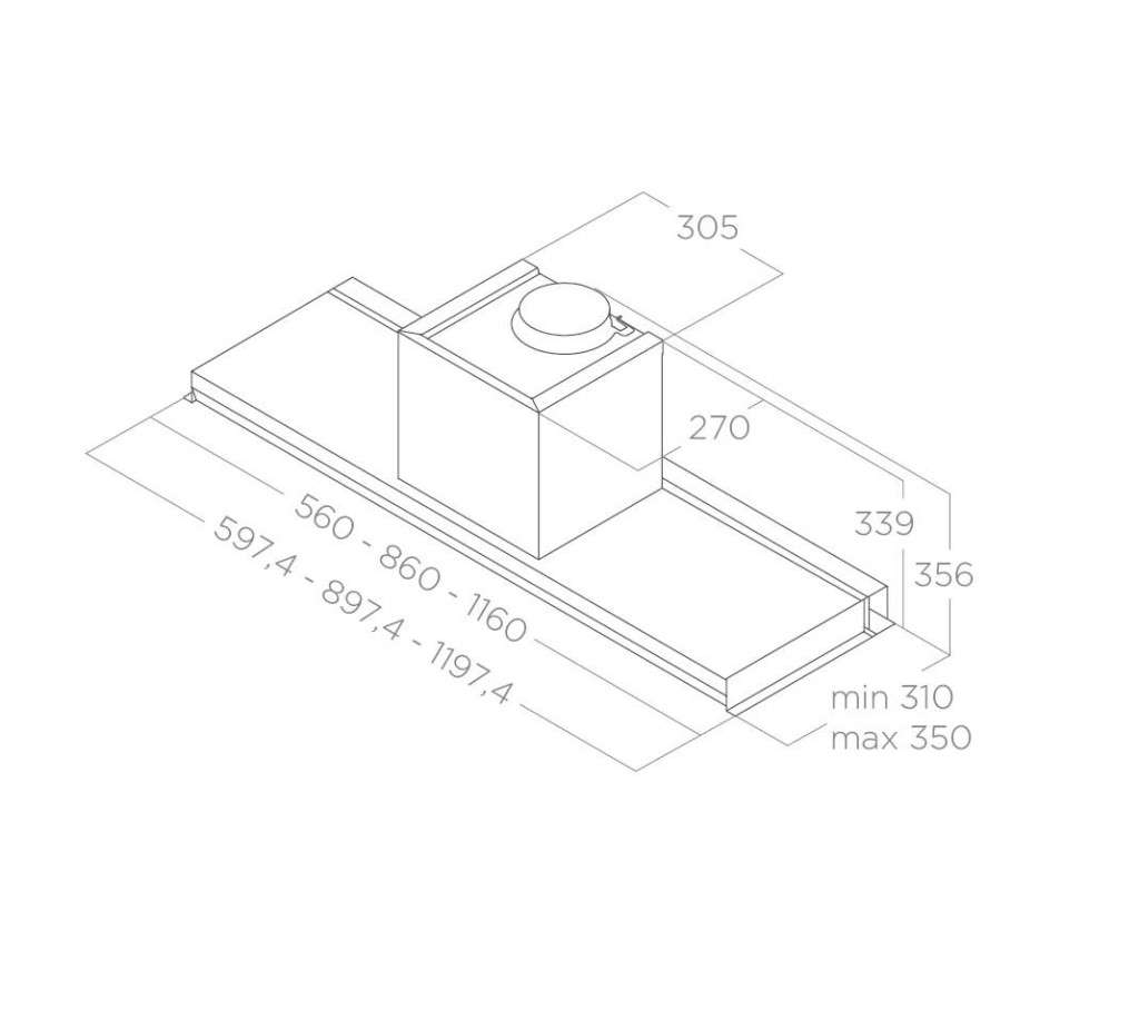 Beépített páraelszívó minimalista kialakítással, amely tökéletesen illeszkedik a fali szekrényekbe. Előlappal van felszerelve, amely védi a szekrényeket a főzés közben felszabaduló gőzöktől.