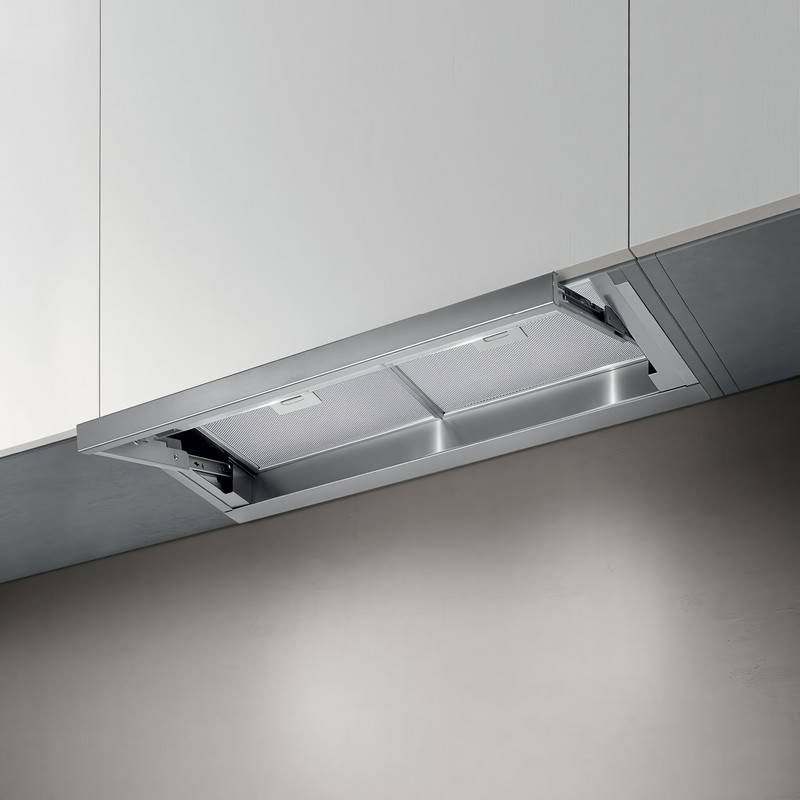 Ez egy rejtett páraelszívó, amely egyedülálló linearitást biztosít a konyhának. Az elülső védőlap óvja a fali szekrényeket és ajtókat a gőzzel szemben, az elszívó felületre terelve azt. Kinyitás és becsukás hatására a páraelszívó be- vagy kikapcsol, és az utoljára használt teljesítményszintet a memóriában tartja.
