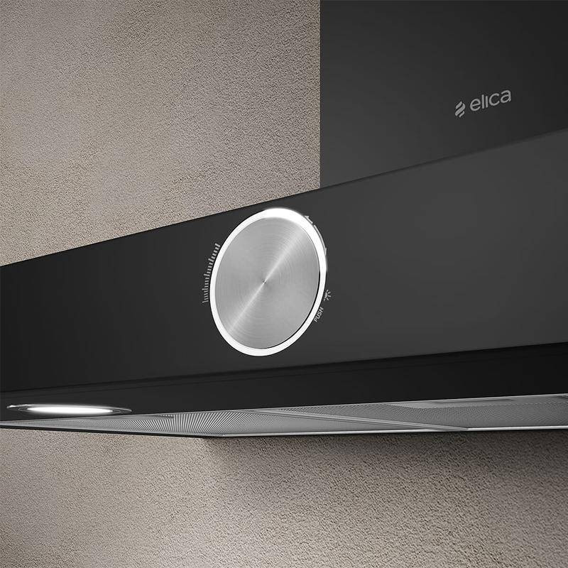 Elica LOL LOL BL/A/90 fali páraelszívó dombornyomott fekete színben, inox forgó vezérléssel és alumínium zsírfilterrel.