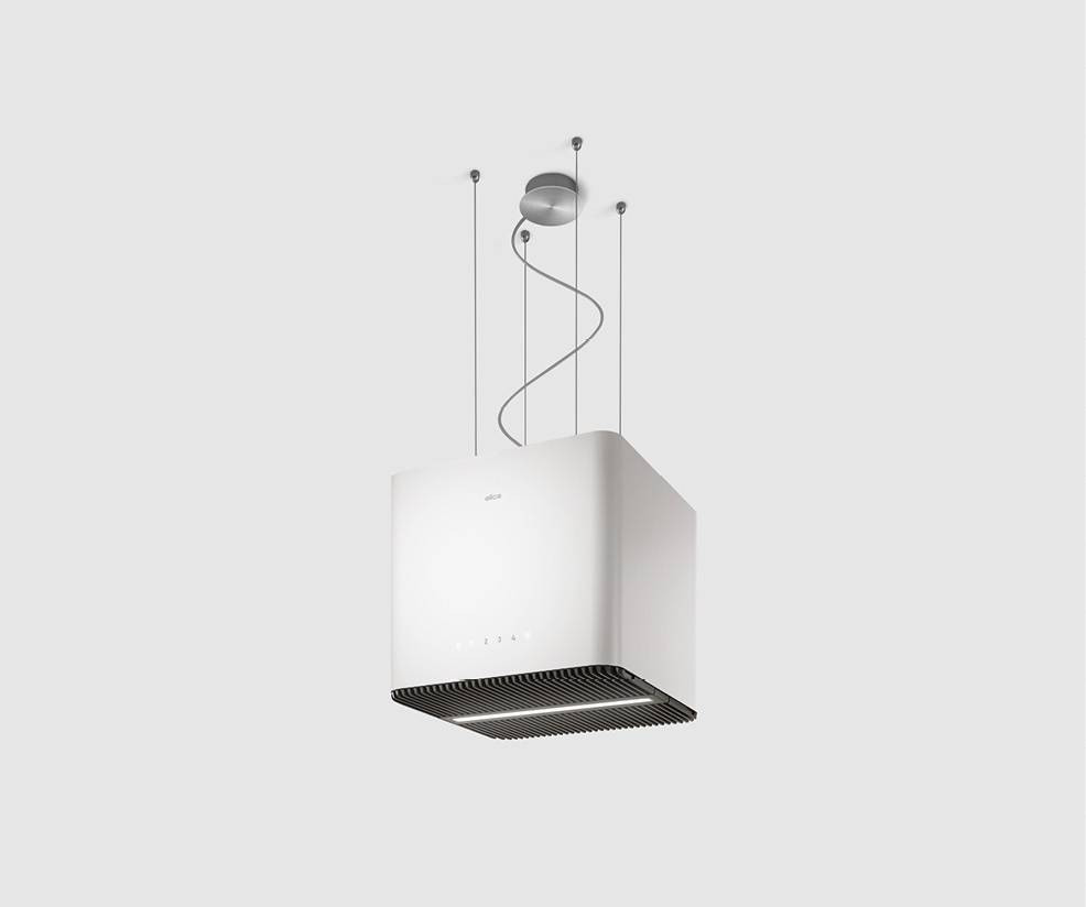 Figyelemre méltó hatású és igen eredeti sziget páraelszivó: lekerekített sarkokkal rendelkező kockaforma jellemzi, amely négyféle kivitelben kapható: fehér, fekete és beton.