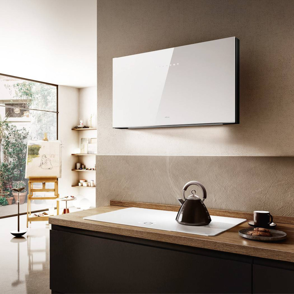 A falra szerelhető páraelszívó esztétikai egyszerűsége a linearitás és a funkcionalitás kiváló szintézisének eredménye. Kétféle kivitelben kapható, alumínium peremprofillal: ultra tiszta, edzett üveg szitanyomással, fehér vagy fekete színben. Az üveget nagyon magas ellenállás és alacsony vastartalom jellemzi, ami növeli az átlátszóságát. A Wi-Fi és Bluetooth kapcsolatnak köszönhetően applikációval vagy hangasszisztensen keresztül is kezelhető, és képes párbeszédet folytatni az Elica főzőlappal, az aktív főzőzónáknak megfelelően beállítva magát. A rendszer maximalizálja a gőz- és szagelszívási kapacitást, miközben minimalizálja a készülék zajkibocsátását. Az előlap felemelhető, így könnyebb tisztítani és hozzáférni a szűrőkhöz.