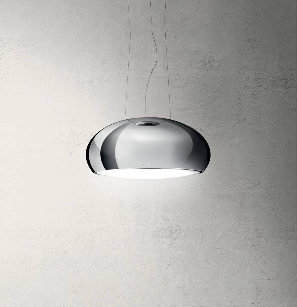 A főzőlap fölött lebegő csillár páraelszívó, amely beszívja a füstöt és feldobja a konyha dizájnját. Fehér, fekete és tükrözött rozsdamentes acél kivitelben kapható.