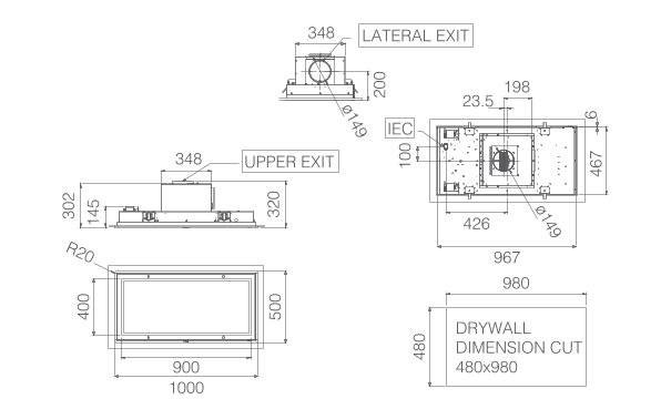 Mennyezeti páraelszívó, amelyet úgy terveztek, hogy fényt hozzon a konyhába. Az elszívó rendszer rejtve van, így helyet hagy a LED-panelnek, amelynek fényerősségét és tónusát is lehet állítani.
