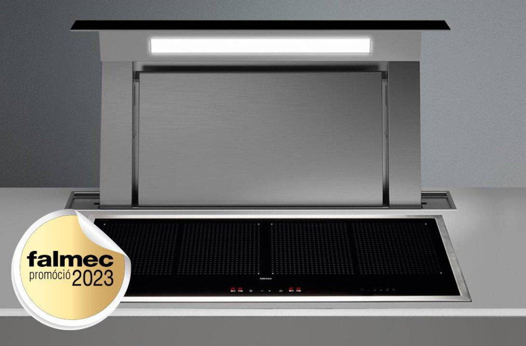 Falmec Down Draft pultba építhető páraelszívó Az elszívó érintővezérléssel aktiválódik majd egy motoros mechanika segítségével automatikusan kiemelkedik a pultból, aztán a főzés végeztével visszasüllyed a munkapultba. Inox, fekete vagy fehér üveg előlap érintésvezérléssel és AISI304 rozsdamentes acél elszívó test, LED világítással. A készülék rendelhető belső rászerelt SLIM motorral vagy akár külső motorral is. Lehetőség van az elszívó bekötésére belső keringtetéses üzemmódban is. Ebben az esetben az elszívott levegő egy szénfilteren keresztül jut vissza a konyha légterébe. KACL.952 Carbon.Zeo szűrőegység (opcionálisan rendelhető) Konyhabútor lábazatába építhető magas hatékonyságú széncellás, regenerálható szűrő belső keringtetés esetén, Falmec pultba építhető páraelszívókhoz. Mindössze 6 cm magas, így könnyen beépíthető. A szénszűrők esetében ez a leghatékonyabb szűrő. Élettartama kb. 5év (használattól függ), a szűrőt érdemes évente egyszer regenerálni, a szűrő legfeljebb 5-ször regenerálható. A szűrő regenerálása: A szűrő regenerálásához helyezze azt egy normál háztartási sütőbe, állítsa be a hőmérsékletet 160°C -ra és hagyja a sütőben 1 órán át.Dialogue system: A Páraelszívó és az indukciós főzőlap párbeszéde. A Falmec új Dialogue System rendszerével az elszívó különféle funkciói közvetlenül a Falmec indukciós főzőlapról vezérelhetők. A főzőlap és a páraelszívó közötti párbeszéd rádiófrekvenciákon megy végbe, és nem igényel további vevőkészülékek beépítését az elszívóba.