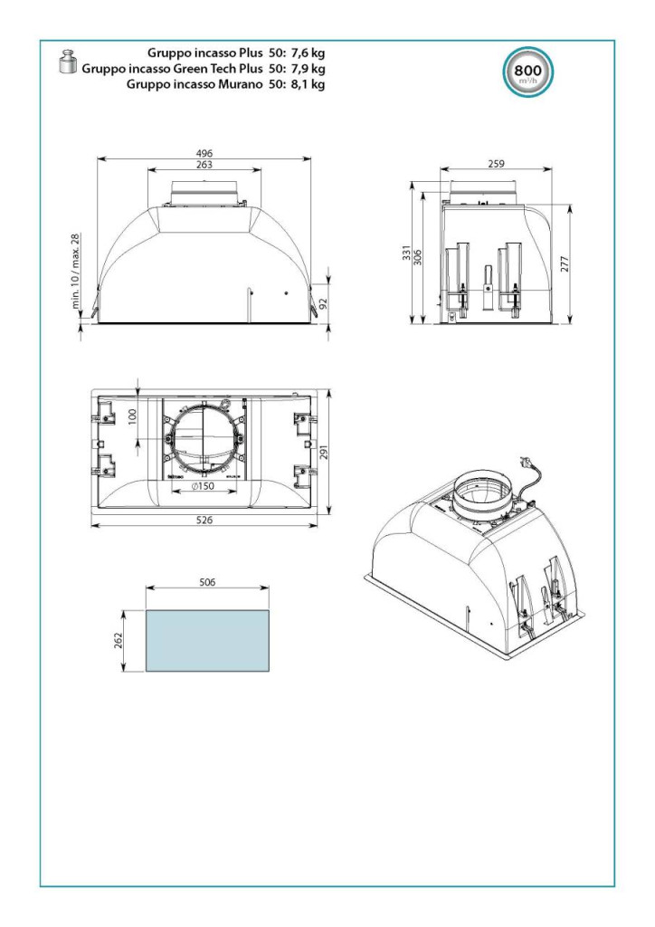 A Falmec továbbfejlesztette a méltán sikeres Gruppo incasso elszívó családot. A Gruppo Incasso Plus elszívónál már a a világítás fényerejét is lehet szabályozni a színhőmérséklet mellett. Az elszívót kétféle üzemmódban lehet használni lehet, kivezetéssel és belső keringtetéssel. A hatékony elszívásról egy nagyteljesítményű (800 m3/h) motor és a perimetrikus rendszer gondoskodik, amely növeli a főzési füstök és gőzök elszívási hatékonyságát. Belső keringtetés esetén a szűrésről a Falmec nagyhatékonyságú Carbon.Zeo szűrője gondoskodik (opcionálisan rendelhető tartozék).