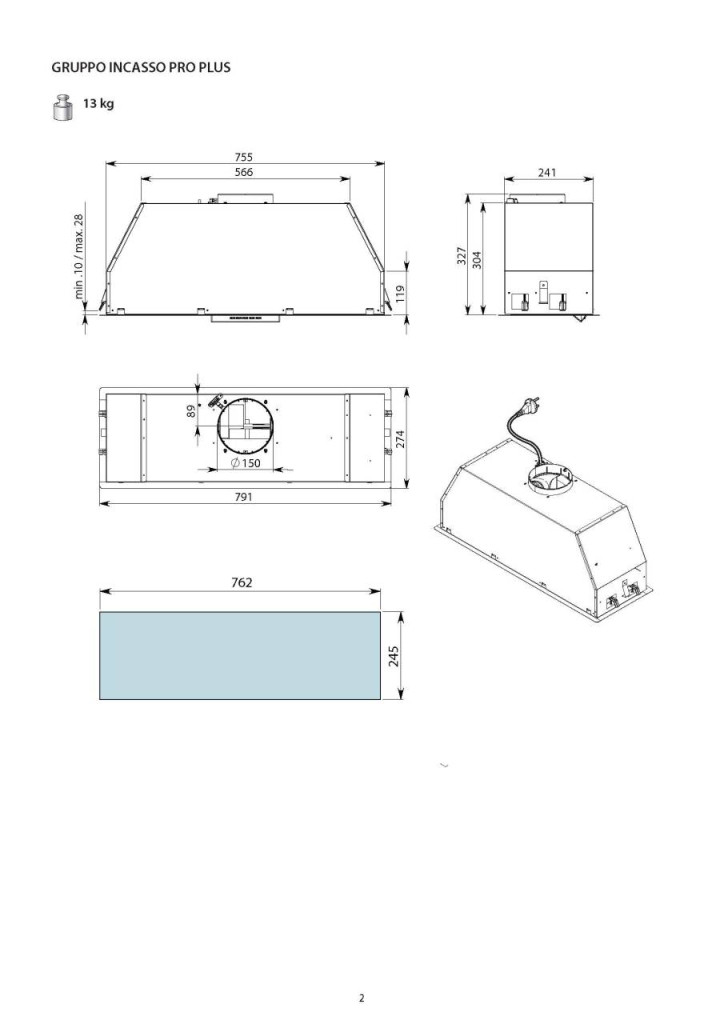 A Falmec továbbfejlesztette a méltán sikeres Gruppo incasso elszívó családot. A Gruppo Incasso Pro Plus elszívónál már a világítás fényerejét is lehet szabályozni a színhőmérséklet mellett. Az elszívót csak kivezetéssel lehet használni. A hatékony elszívásról egy nagyteljesítményű (1000 m3/h) motor gondoskodik, amely növeli a főzési füstök és gőzök elszívási hatékonyságát.