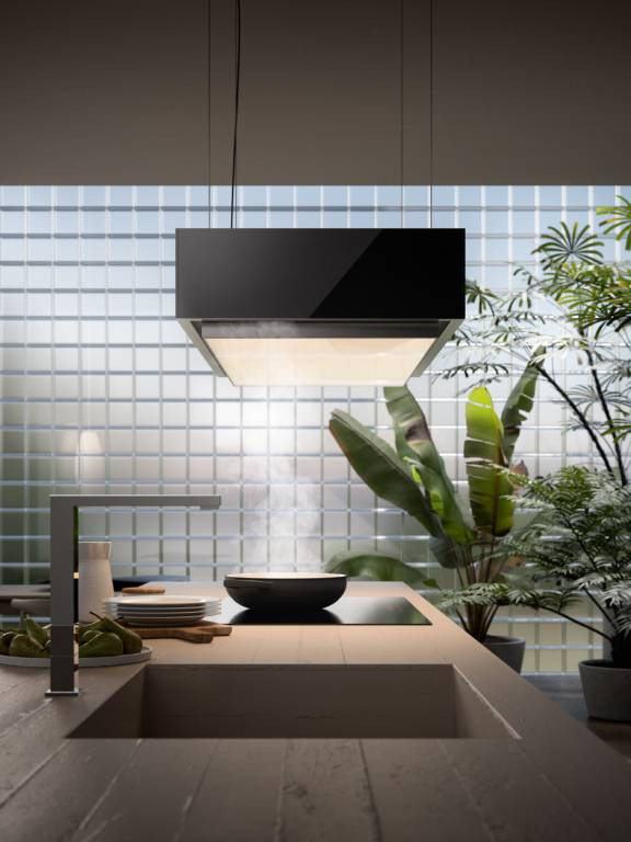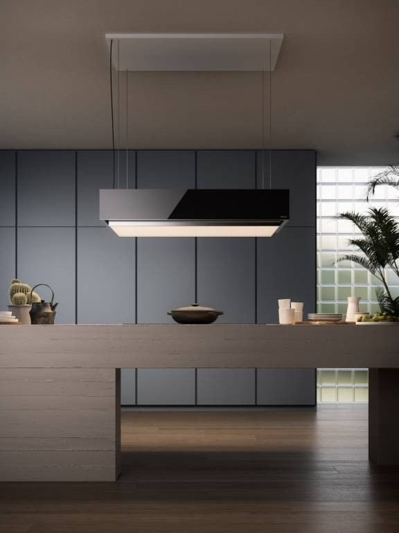 A Levantét minimál geometria jellemzi, oldalsó üvegfelülettel, fehér, fekete és szürke színben választható, az alsó oldalra épített panellel. A fény a teljes felületen átvilágít, és a fényes acél keret különleges eleganciát kölcsönöz a terméknek. A páraelszívó helyzete igény szerint fel-le változtatható egy távirányítós motor segítségével. A magasság szükség szerint szabályozható. Amikor nincs szükség rá, teljesen felhúzható a mennyezetre.