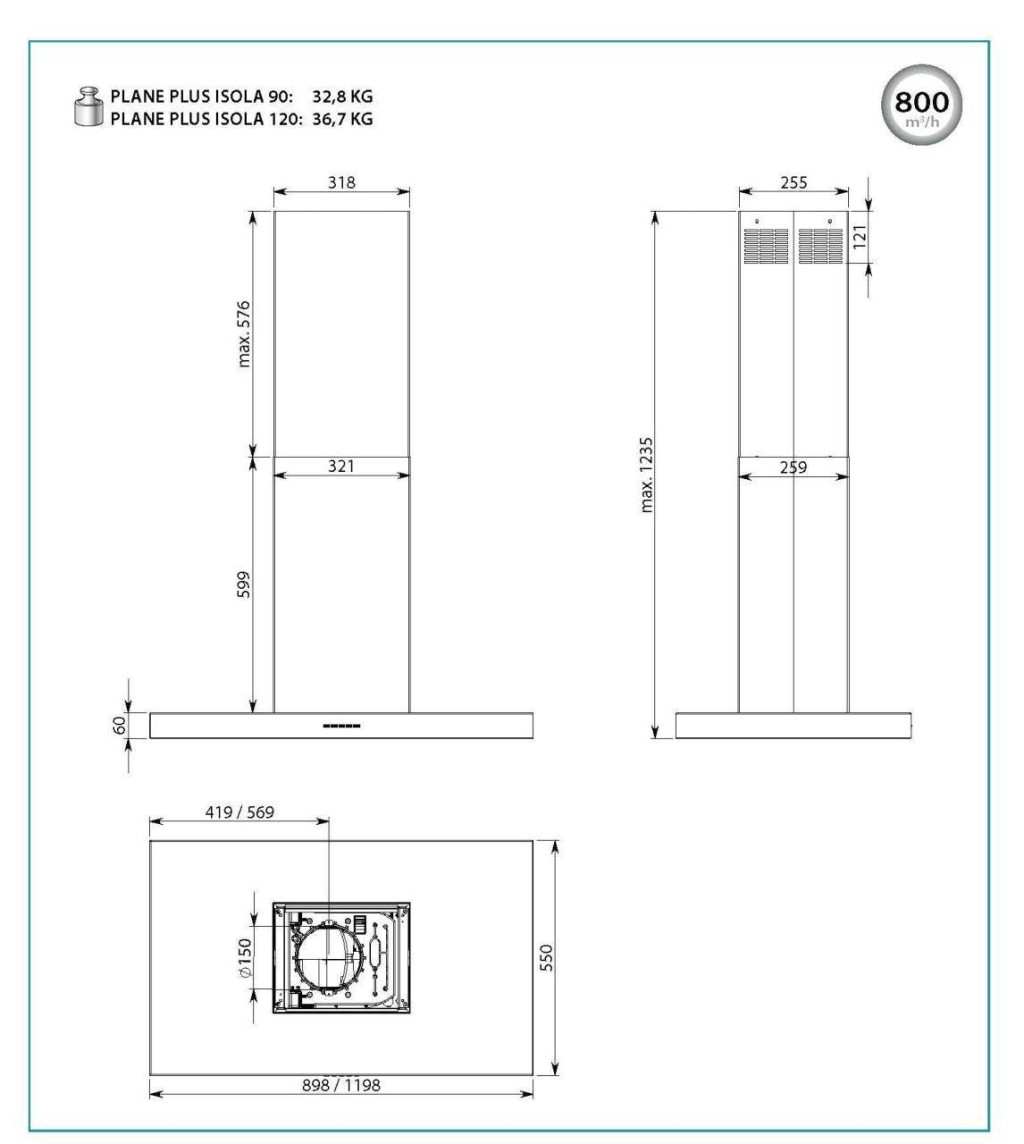 FALMEC PLANE PLUS sziget páraelszívó, 90 cm, inox