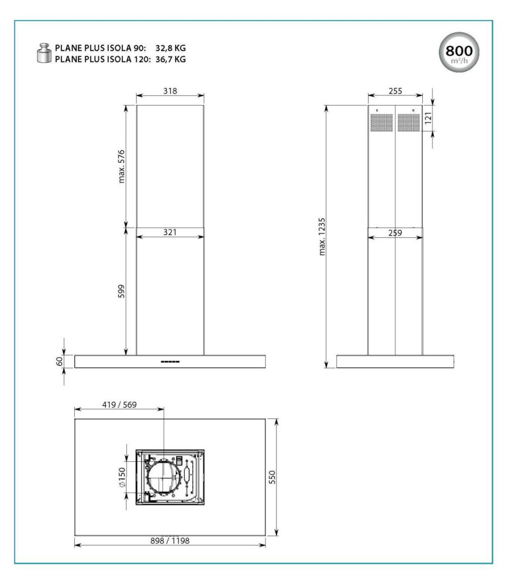 A Plane Plus nem csupán szép, hanem rendkívül hatékony is. Erős 800 m3/h teljesítményű motorja és szűrőrendszere biztosítja, hogy a főzés során keletkező füst, gőz és szagok gyorsan és hatékonyan eltűnjenek a levegőből. A különböző sebességfokozatok lehetővé teszik, hogy az elszívás intenzitását mindig az aktuális igényekhez igazítsuk.