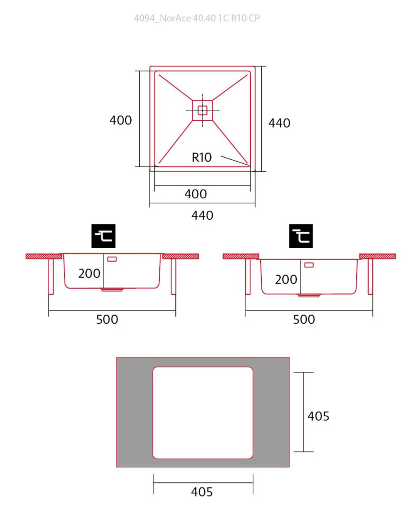 NODOR - Mosogatótálca NorAce 40.40 1C R10 CP inox munkalapra és alá is szerelhető