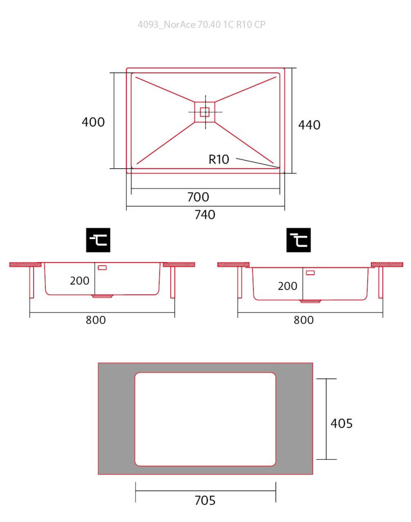NODOR - Mosogatótálca NorAce 70.40 1C R10 CP inox munkalapra és alá is szerelhető