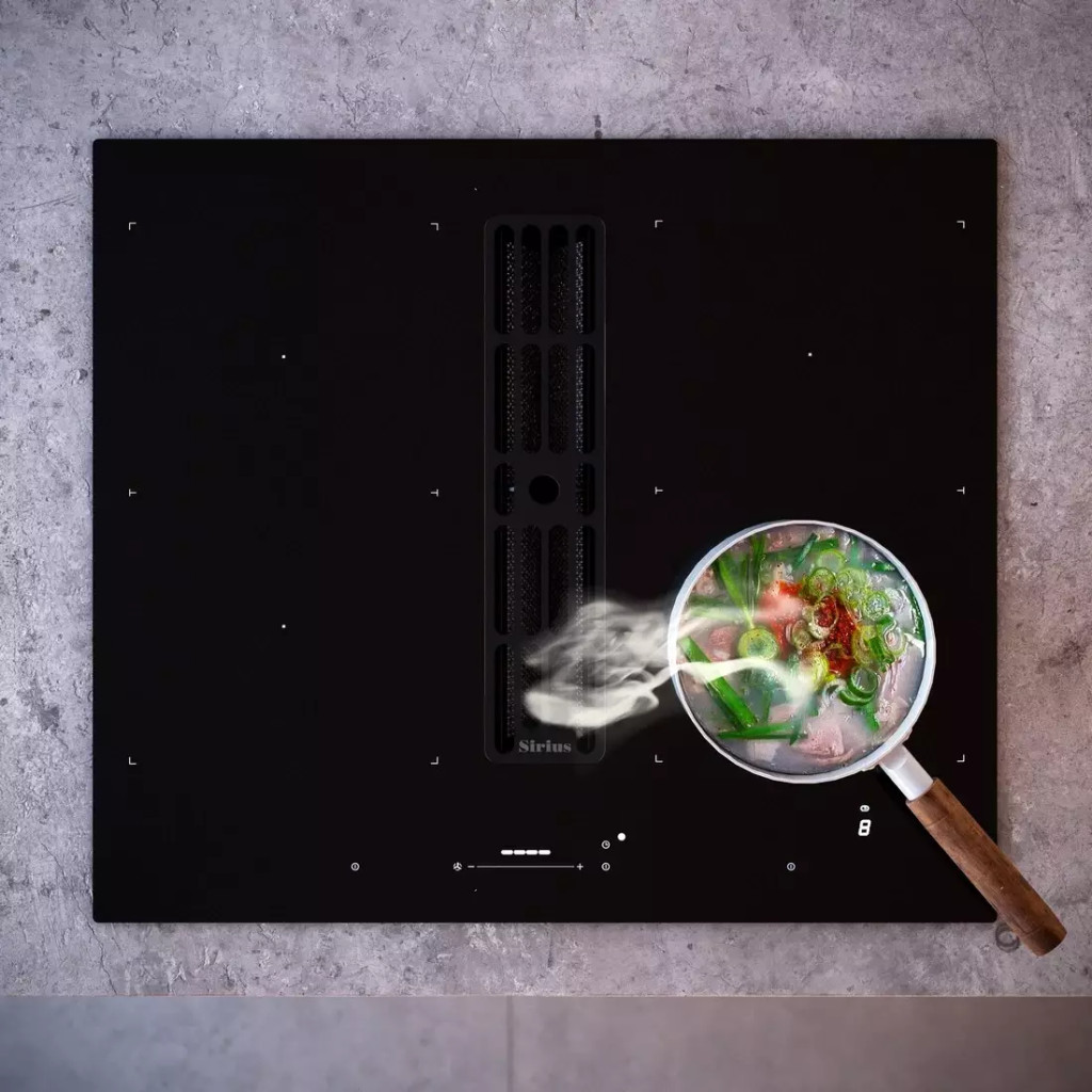 A SIRIUS S-DDH6 indukciós főzőlap beépített elszívóval ötvözi az innovatív technológiát, a kifinomult dizájnt és a maximális kényelmet. Kompakt, 60 cm széles kialakítása tökéletes választás bármilyen modern konyhába, hiszen nemcsak a főzéshez nyújt kiváló teljesítményt, hanem azonnal gondoskodik a gőzök és szagok hatékony elszívásáról is. Így nincs szükség külön páraelszívóra, időt, helyet és pénzt takaríthat meg vele.