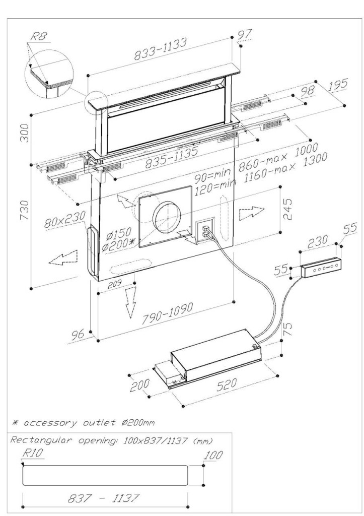 A Sirius S-DD STONE 90 EM pultba építhető páraelszívó gyárilag nem rendelkezik előlappal. Ennek célja, hogy az előlapot ugyanabból az anyagból készíthesse el, mint amiből a munkapult készült. Így a készülék teljesen beleolvad a konyha környezetébe, egységes és harmonikus látványt nyújtva. Bekapcsoláskor motoros mechanikával kiemelkedik a pultból, majd használat után visszabújik, így a konyhapult mindig rendezett és elegáns marad.